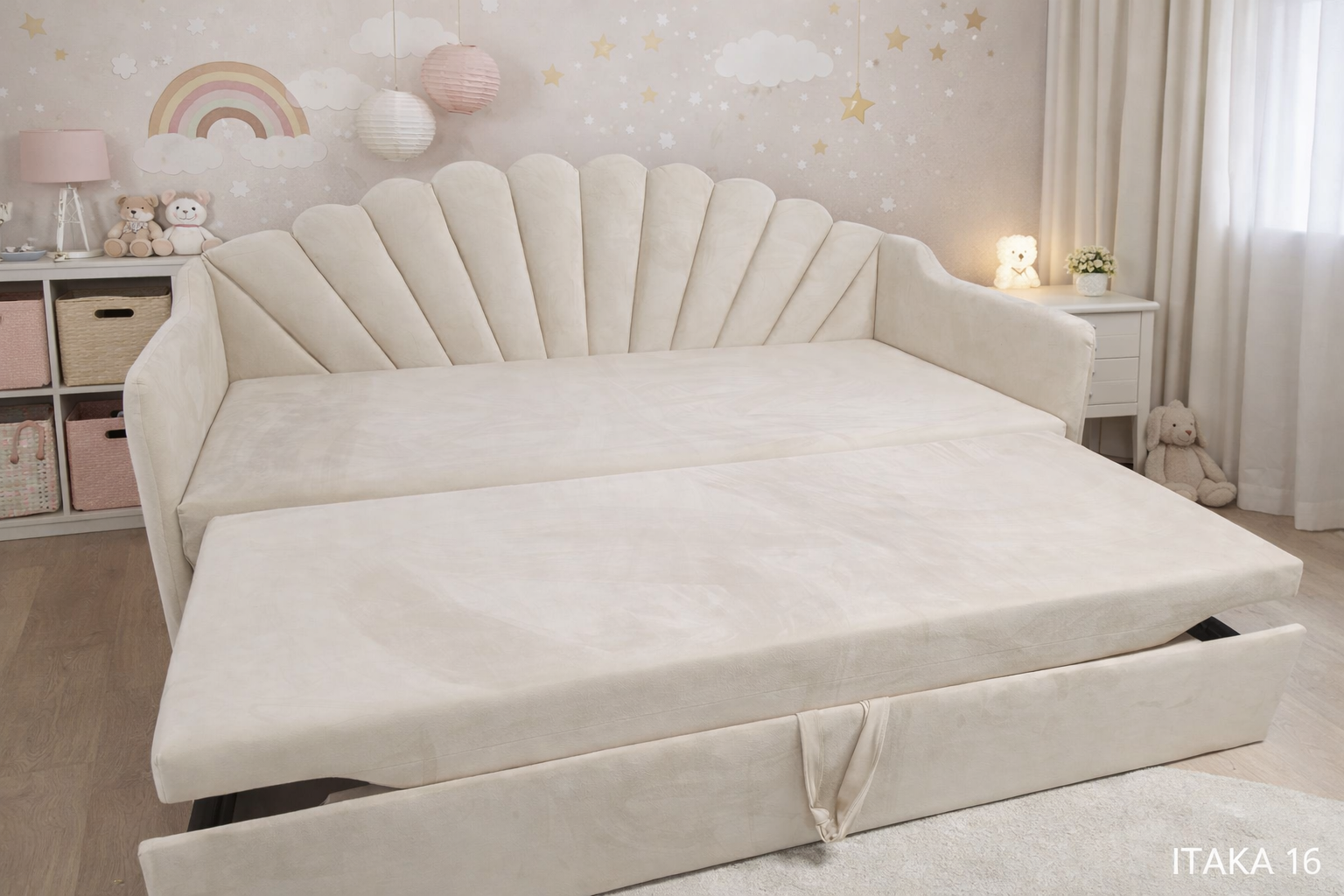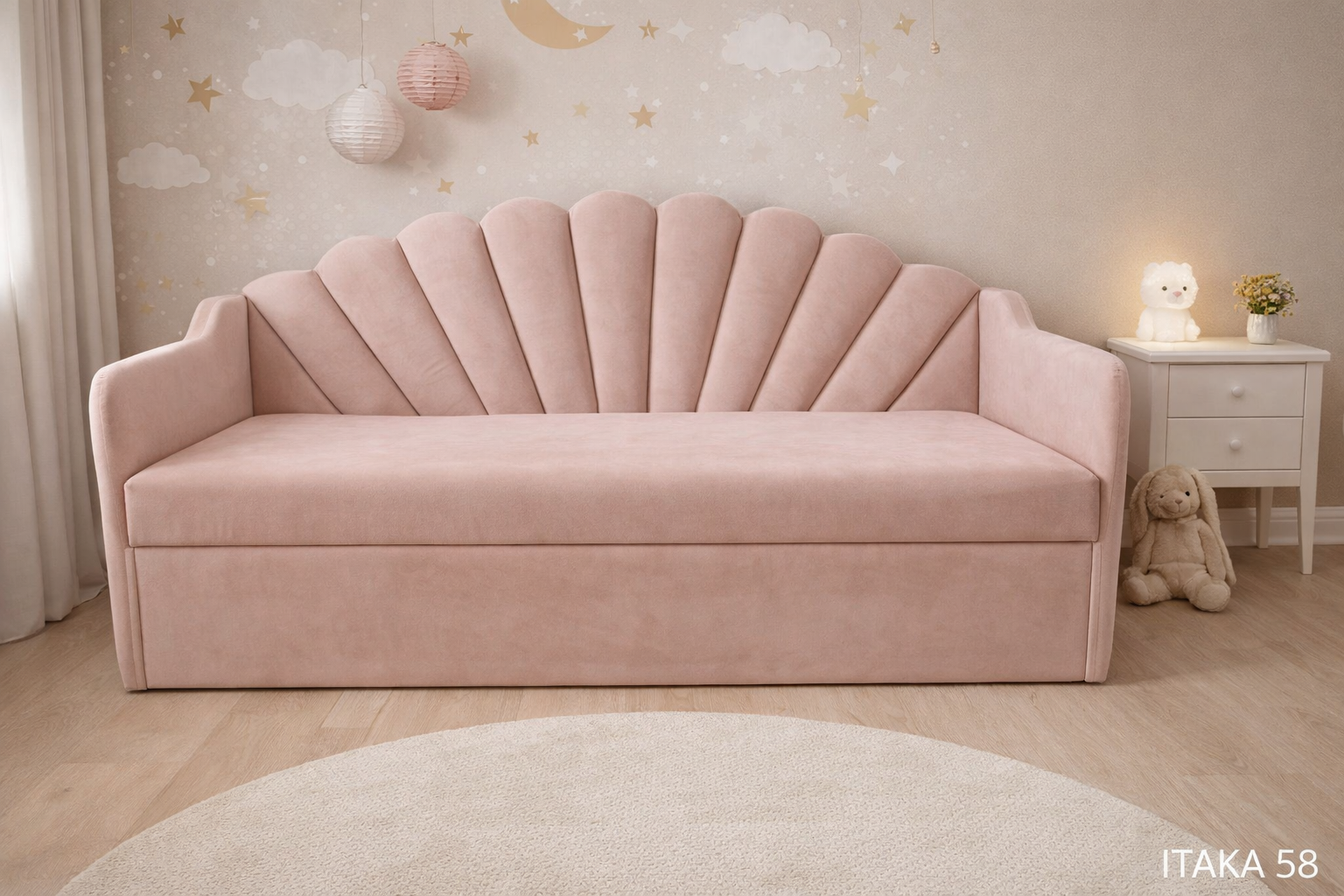 Łóżko dziecięce w kształcie muszelki to nie jest zwykły mebel. To centralny punkt pokoju, który od razu robi efekt „wow”. Ten charakterystyczny, wachlarzowy zagłówek inspirowany muszlą nadaje wnętrzu bajkowego klimatu, ale w eleganckim, dopracowanym wydaniu – bez przesady i kiczu.