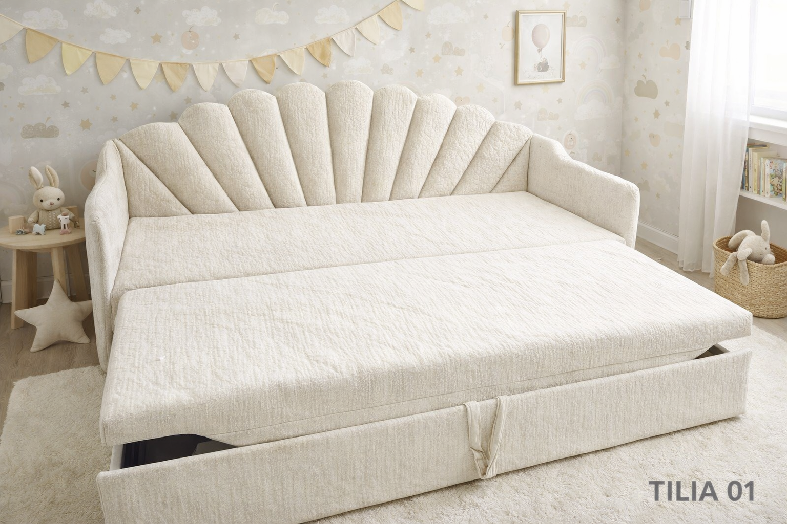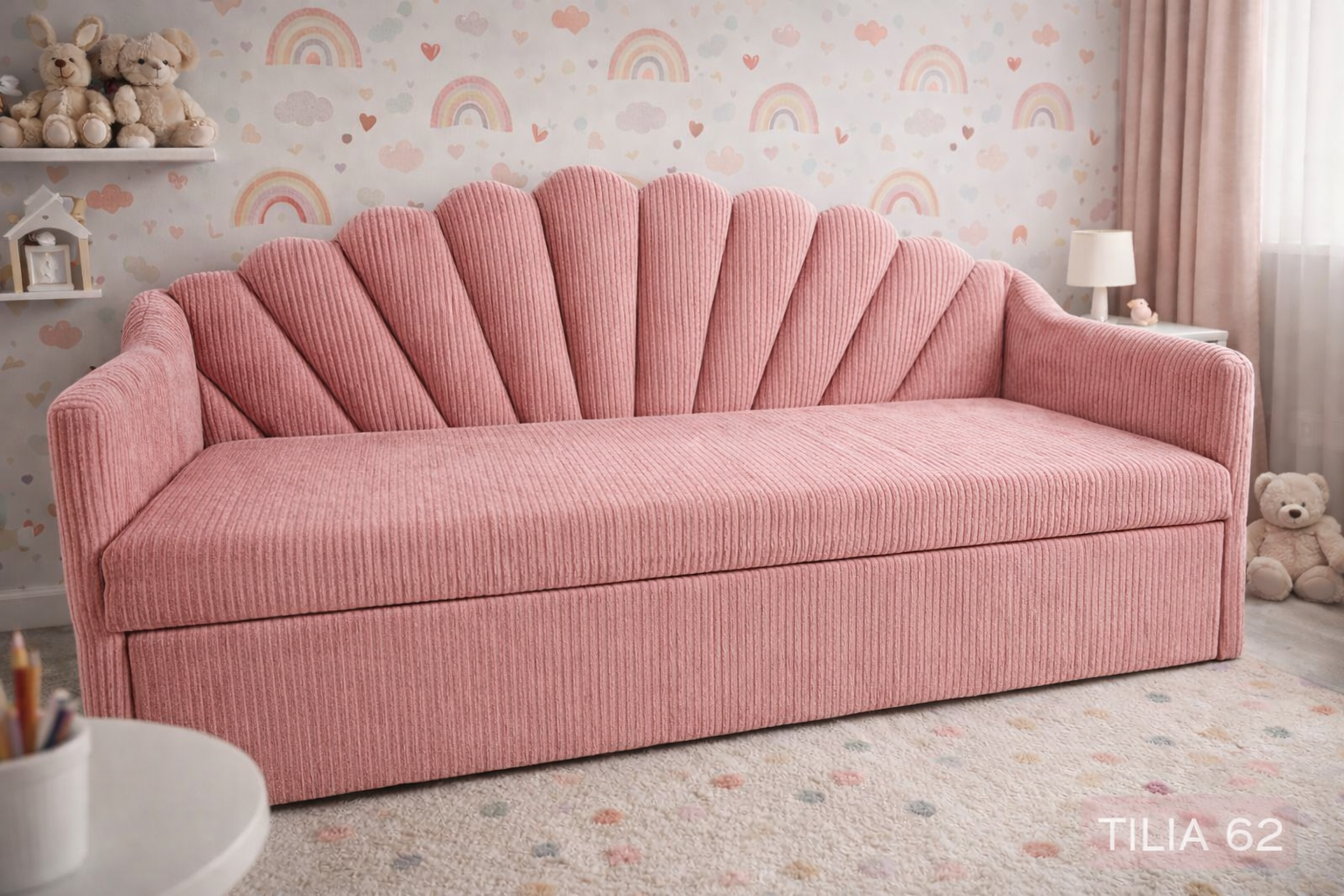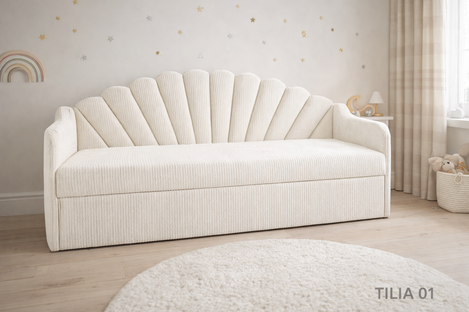 Łóżko dziecięce w kształcie muszelki to nie jest zwykły mebel. To centralny punkt pokoju, który od razu robi efekt „wow”. Ten charakterystyczny, wachlarzowy zagłówek inspirowany muszlą nadaje wnętrzu bajkowego klimatu, ale w eleganckim, dopracowanym wydaniu – bez przesady i kiczu.