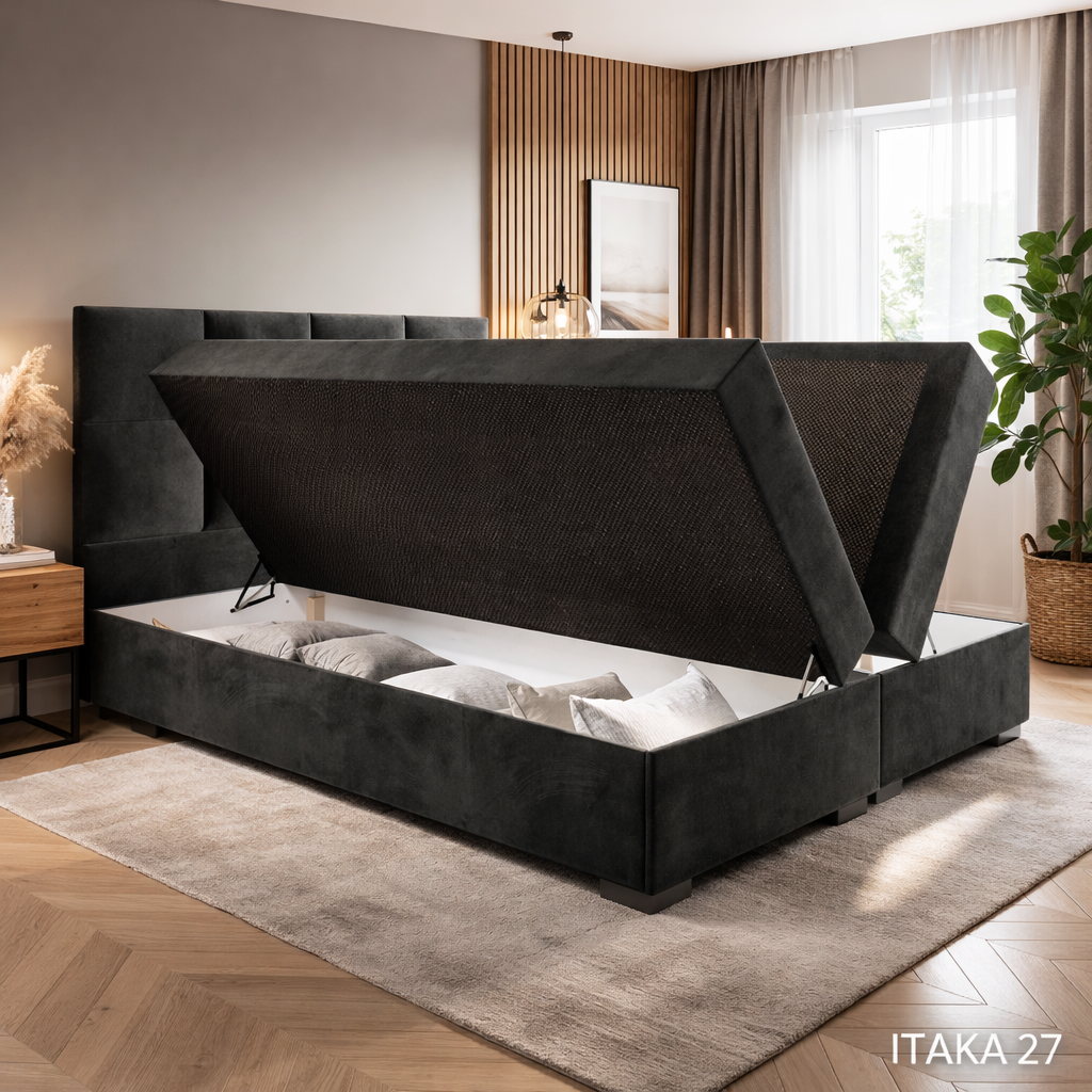 Łóżko kontynentalne tapicerowane Nero Materiał- Itaka