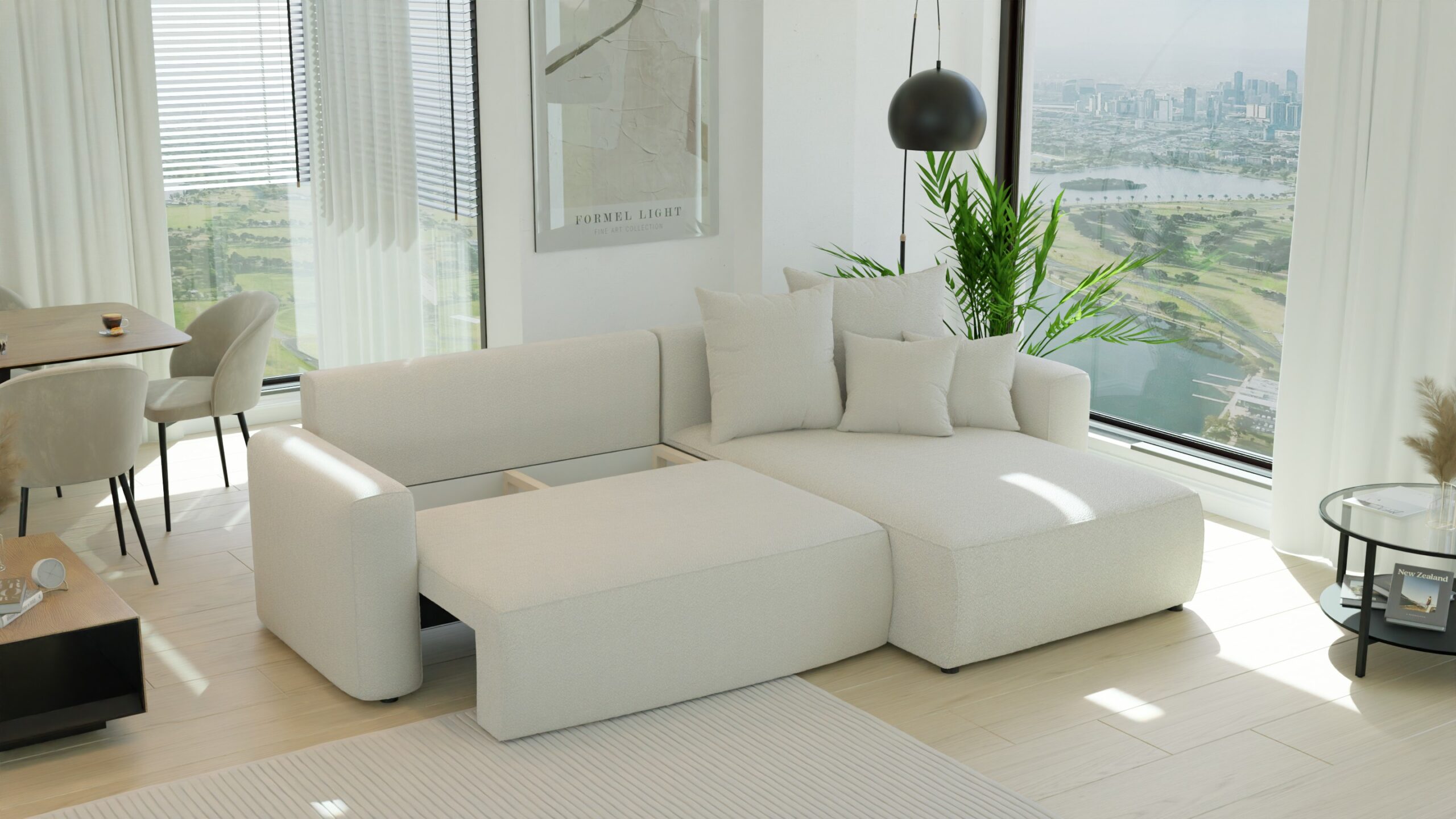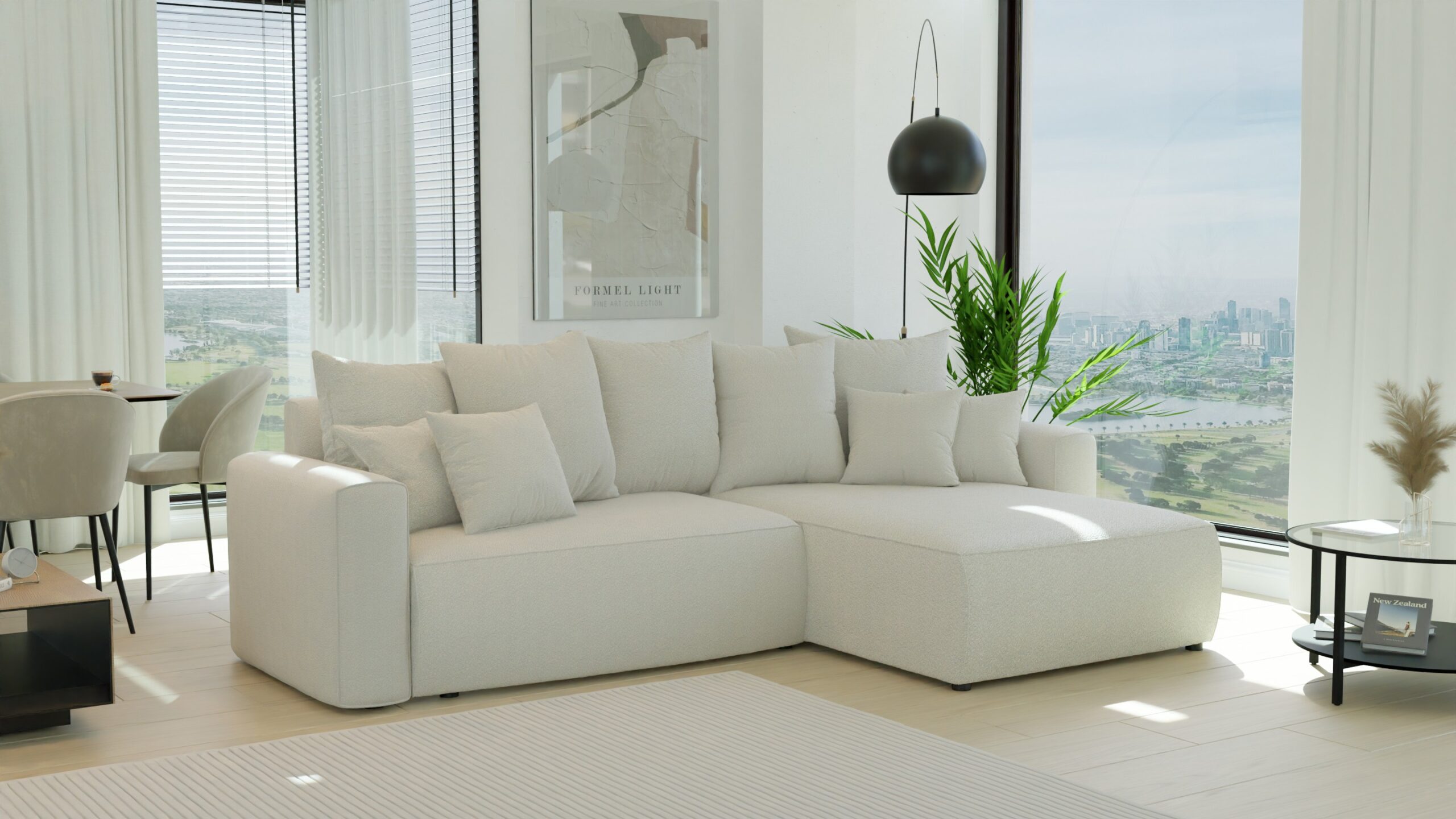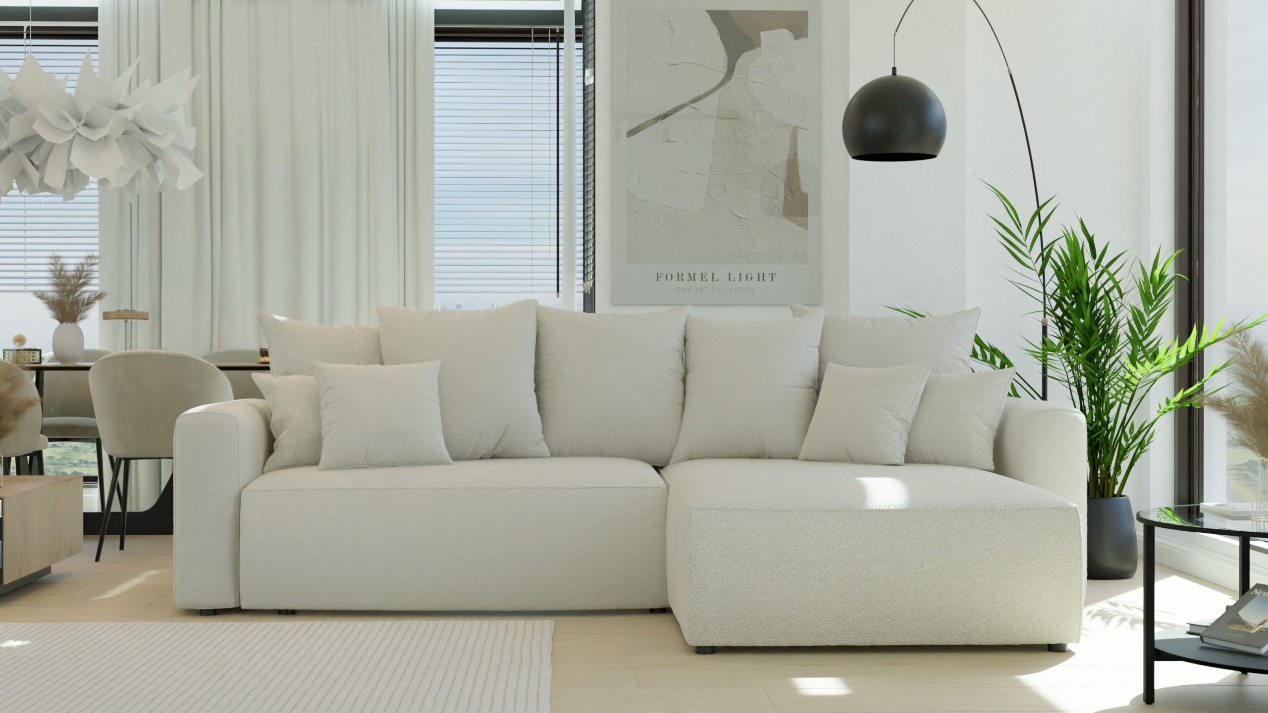 Prosta, geometryczna forma sofy doskonale odnajdzie się we wnętrzach w stylu nowoczesnym, minimalistycznym, japandi czy soft loft. BARI L nie dominuje przestrzeni – ona ją dopełnia, wprowadzając wrażenie ładu, spokoju i elegancji.