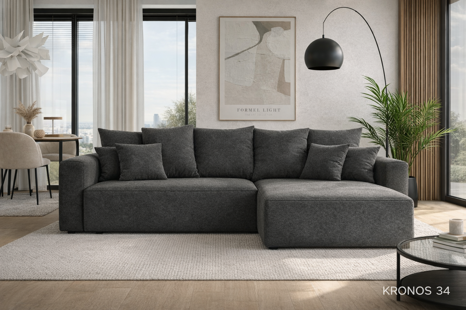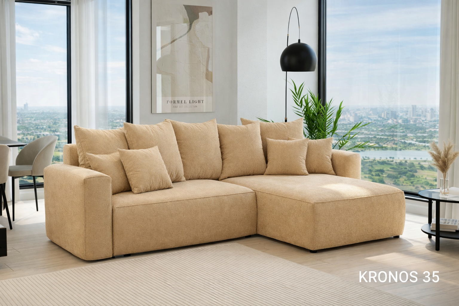 BARI L to nowoczesny narożnik zaprojektowany z myślą o maksymalnej wygodzie, funkcjonalności i ponadczasowej estetyce. Jego miękka bryła, szerokie siedziska i zestaw dużych, sprężystych poduszek tworzą idealne miejsce do codziennego relaksu, spotkań z bliskimi i spokojnych wieczorów w domowym zaciszu.