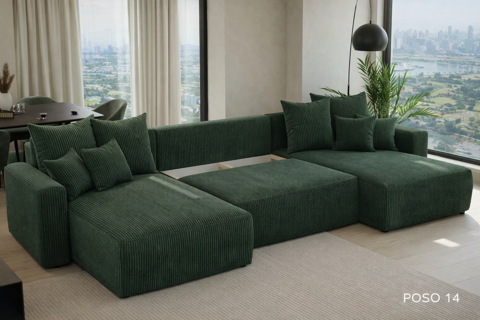Miękkie, obszerne siedziska i ergonomiczne oparcia zapraszają do relaksu po długim dniu, a układ w kształcie U sprawia, że BARI U staje się naturalnym centrum salonu – idealnym do spotkań z bliskimi, rodzinnych seansów filmowych czy leniwych weekendów. Minimalistyczna forma i stonowana kolorystyka dodają wnętrzu klasy i lekkości, jednocześnie podkreślając nowoczesny charakter mebla.