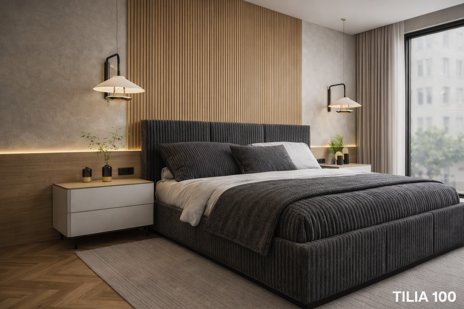 Stwórz sypialnię, do której chce się wracać. Łóżko tapicerowane VERDE w tkaninie TILIA to idealne połączenie nowoczesnego designu, wygody i wysokiej jakości wykonania. Miękki, komfortowy zagłówek zapewnia wygodne oparcie podczas wieczornego relaksu, a elegancka forma nadaje wnętrzu stylowy, przytulny charakter inspirowany standardem hotelowym.